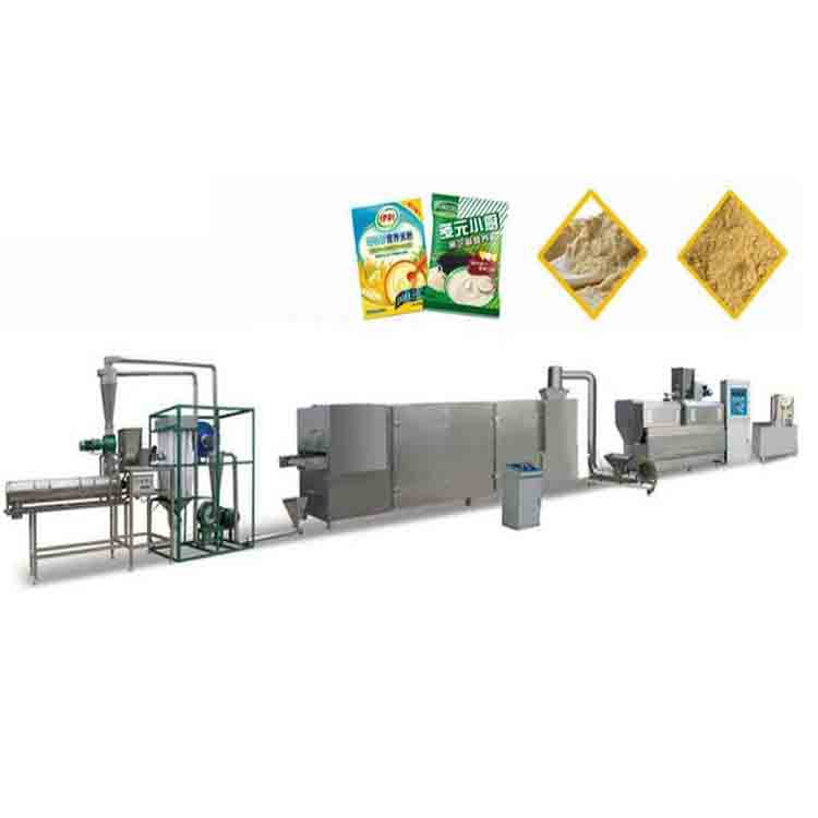Nutritinal baby food machine uses rice, corn, beans and all kinds of grains as raw material. Though extruding, inflating, drying, crushing and mixing. It could produce many kinds of nutrition powder, such as baby rice powder, sasame paste, beans powder and so on.This line could finish all the process automatically from the feeding to the end. It has features of easy operation, without leak of powder dust,sanitation, saving energy and easy to add all kinds of raw materials and nutriment.