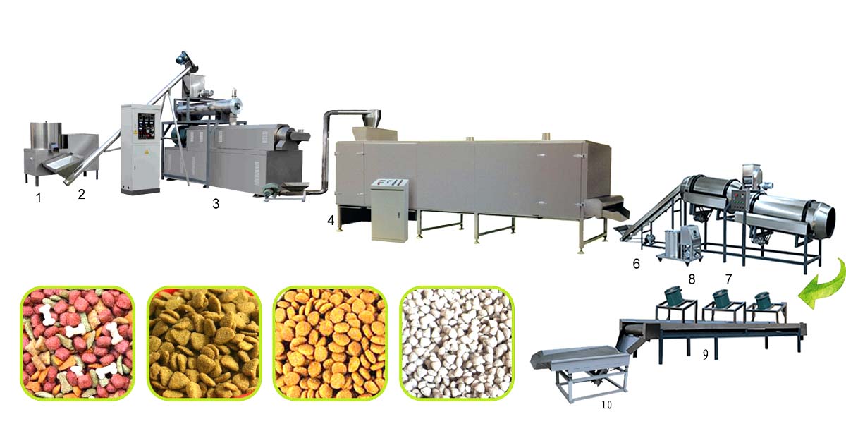 Pentru a crește proteina și alți nutrienți pentru animalul nostru de companie, mașina automată uscată pentru câini / linia de prelucrare utilizează pulbere de carne, boabe, fasole și legume ca materii prime pentru a produce mâncare pentru animale de companie cu o formă nouă, gust unic pentru a le permite să trăiască mai sănătoase.